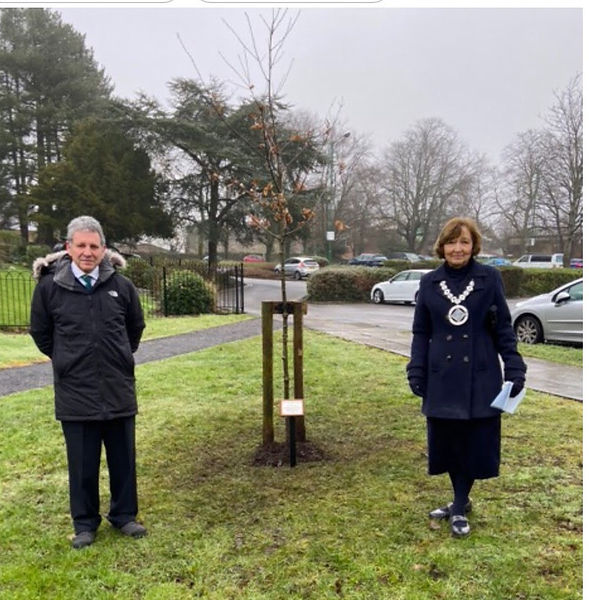 Town Councillor with Chair of Nailsea Town Council following the tree planting when the Kadish (Jewish memorial prayer) was read